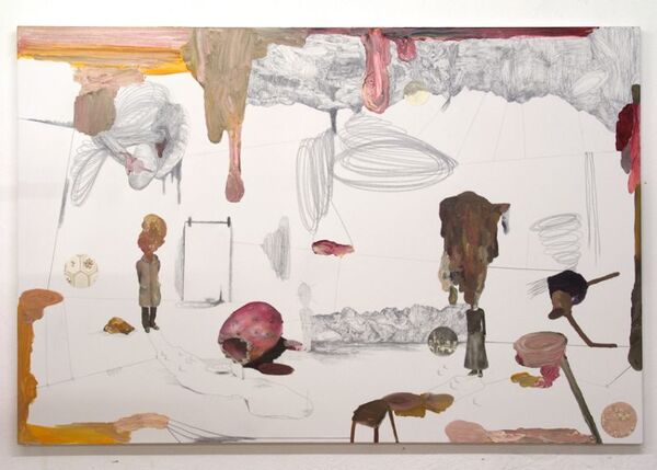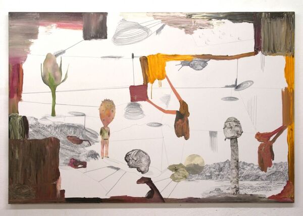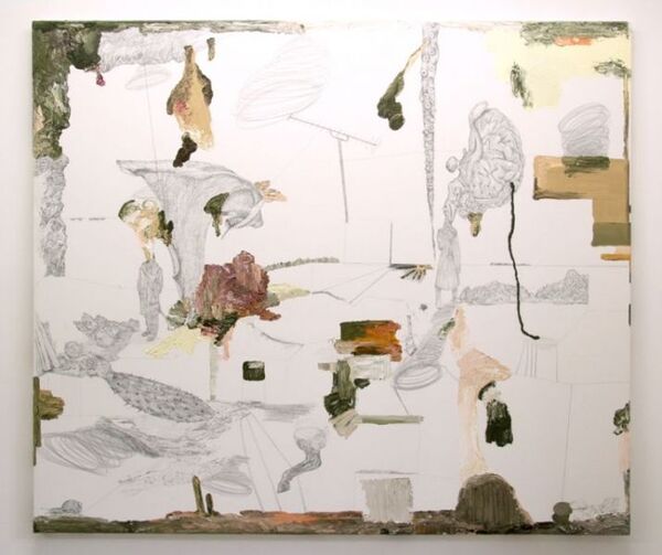 from the series' Migrated Landscape / Quand le chat est parti, les souris dansent', graphite and oil coulour on canvas, 120 x 100 cm, 2009