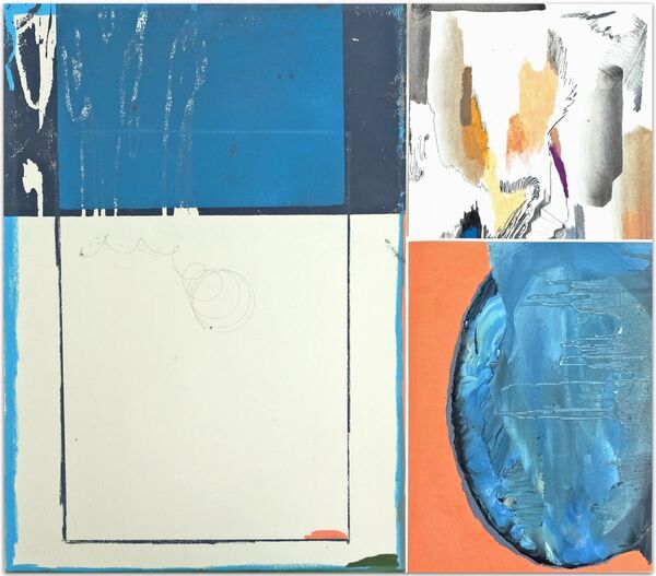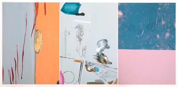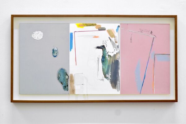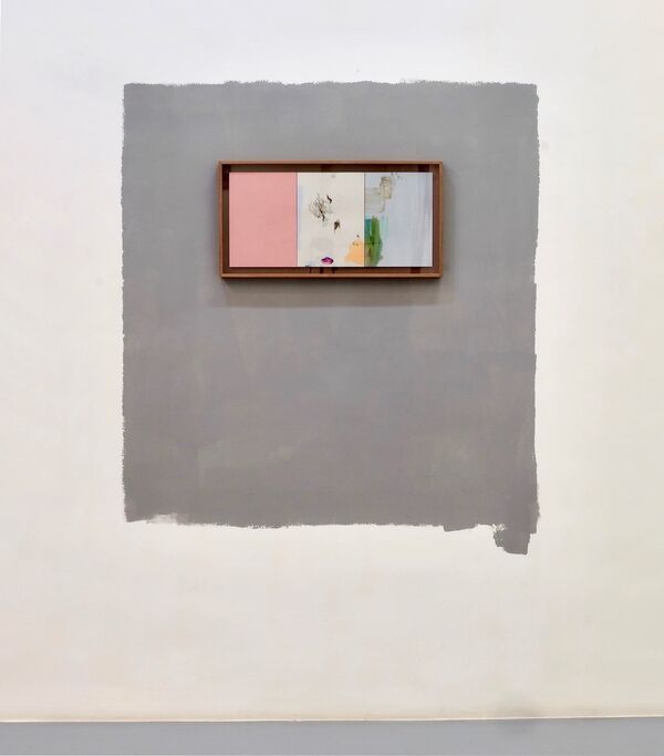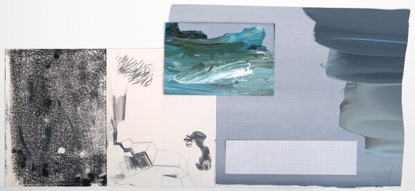 'El orden en la imagen cuando el fondo dominante es gris', oil on canvas, water colour, graphite and China ink on paper, xylography on paper, 29,7 x 63,5 cm, 2018