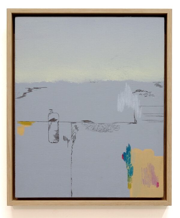 'Transcripción - Deriva y Dispersión', acrylic paint, crayon, water colour and graphite on wood, 31 x 25 cm, 2018
