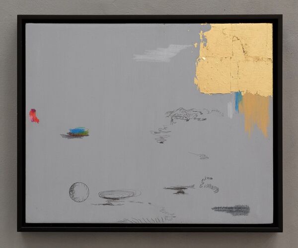 'De un posible viaje', graphite, water colour and gold leaf on acrylic paint on wood, 25 x 31 cm, 2018