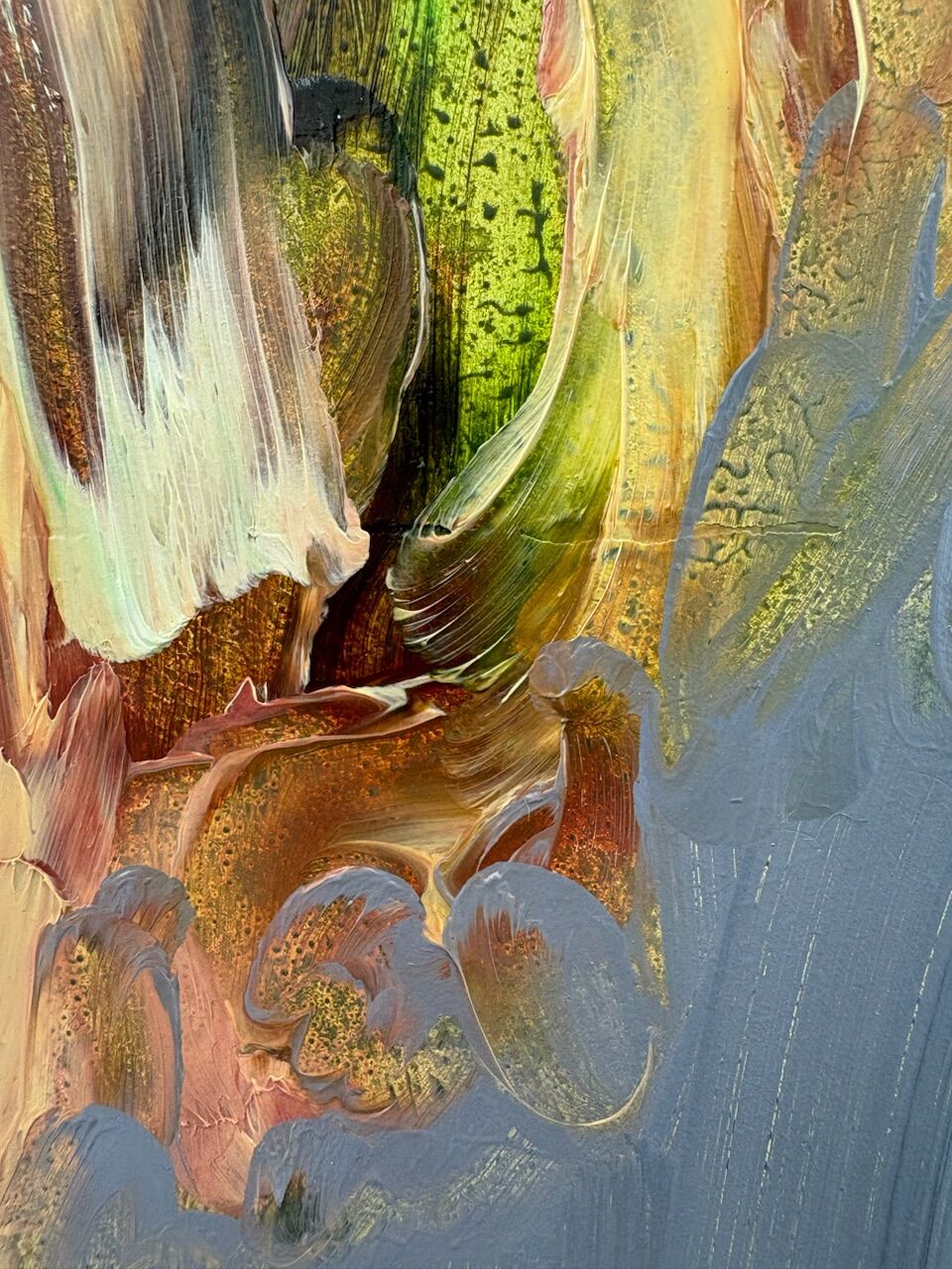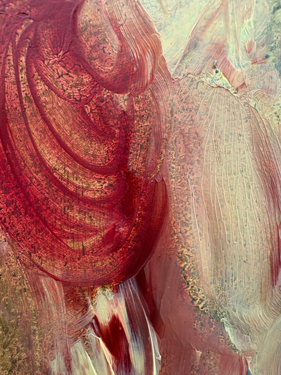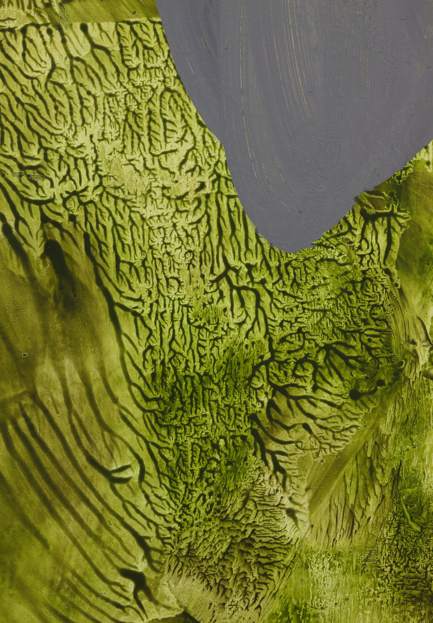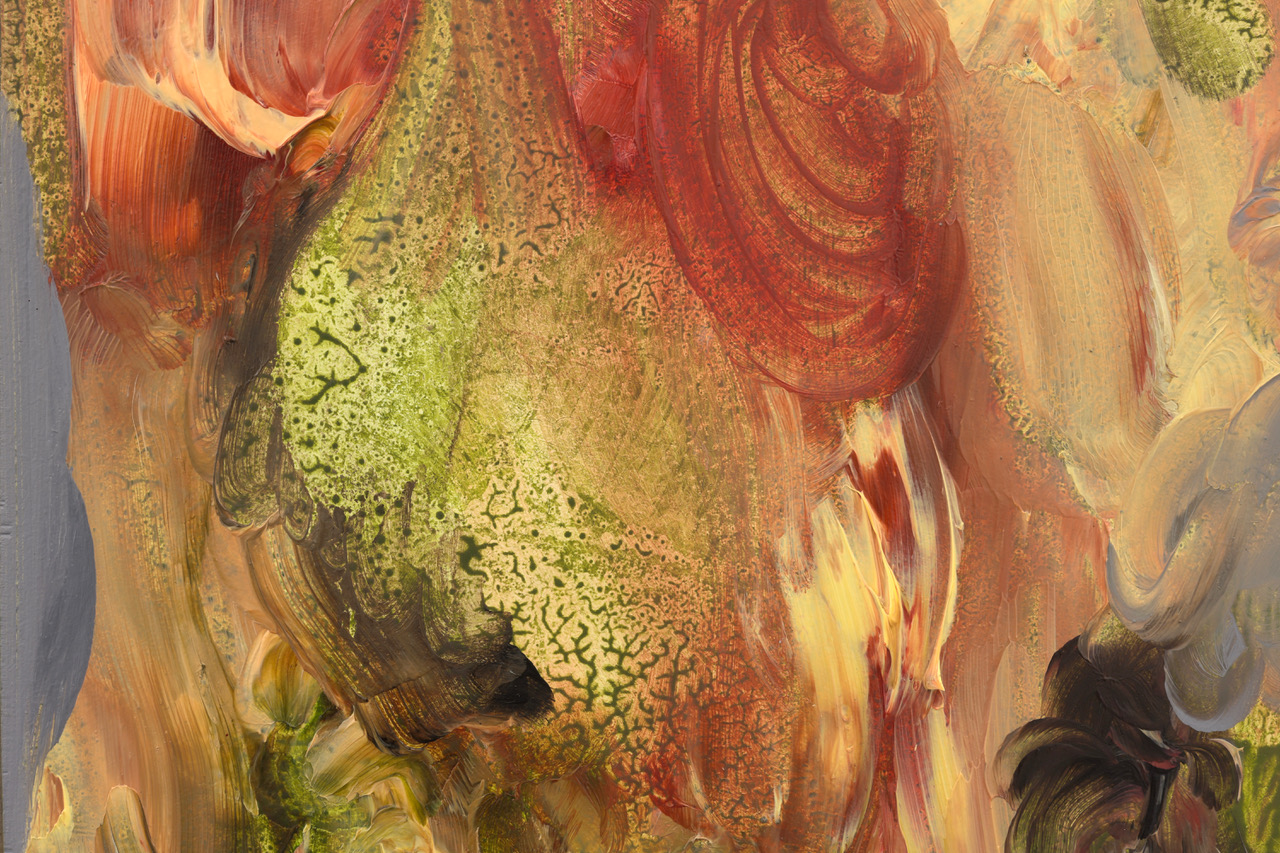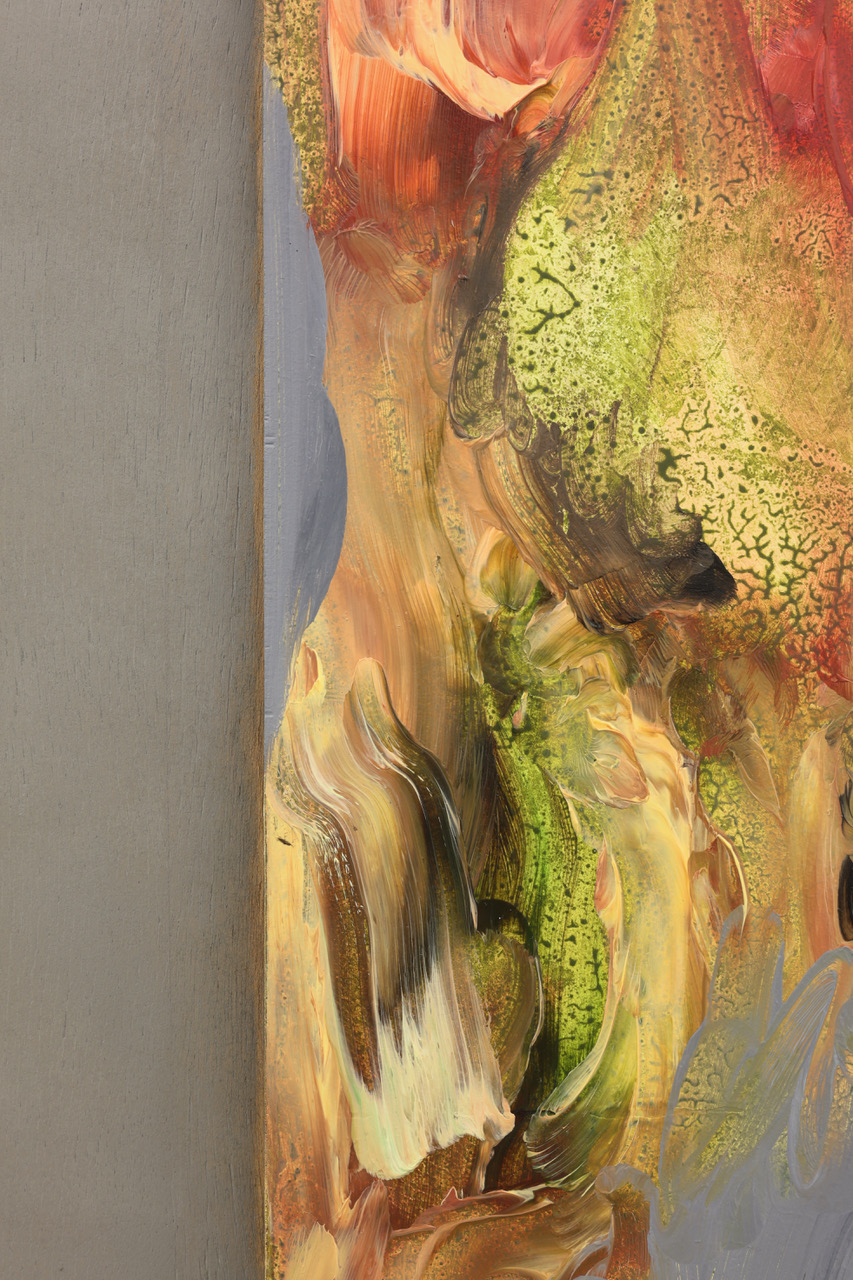 'The State of Aggregation and Interaction', detail: acrylic and oil on wood, 2025