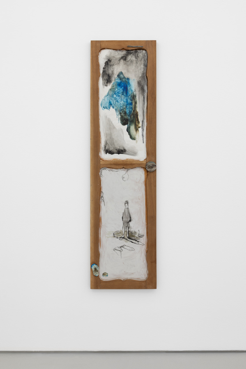 'Flowers Appear', oil and acrylic on wood and metal, nails, wire, 159 x 41 x 2 cm, 2025