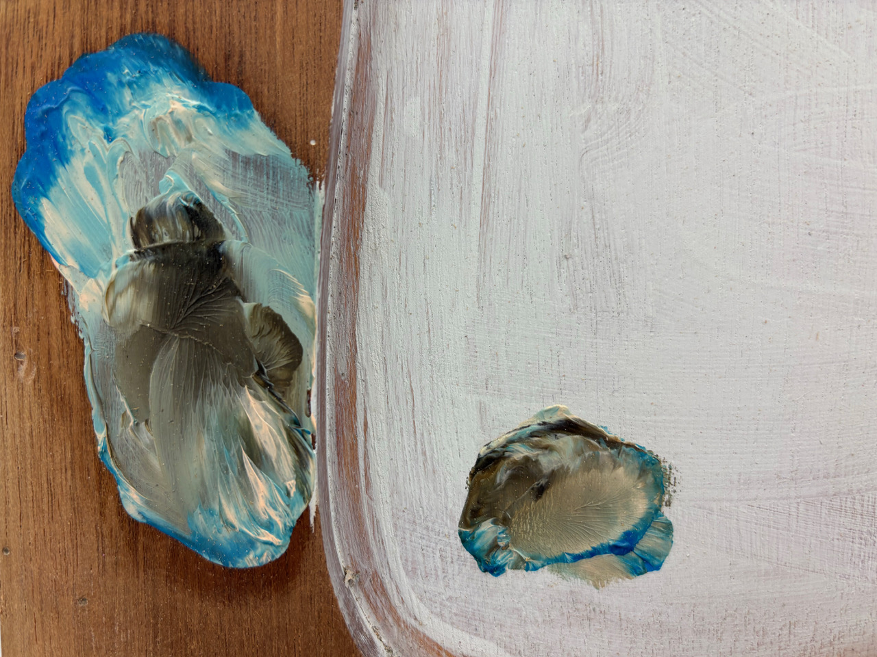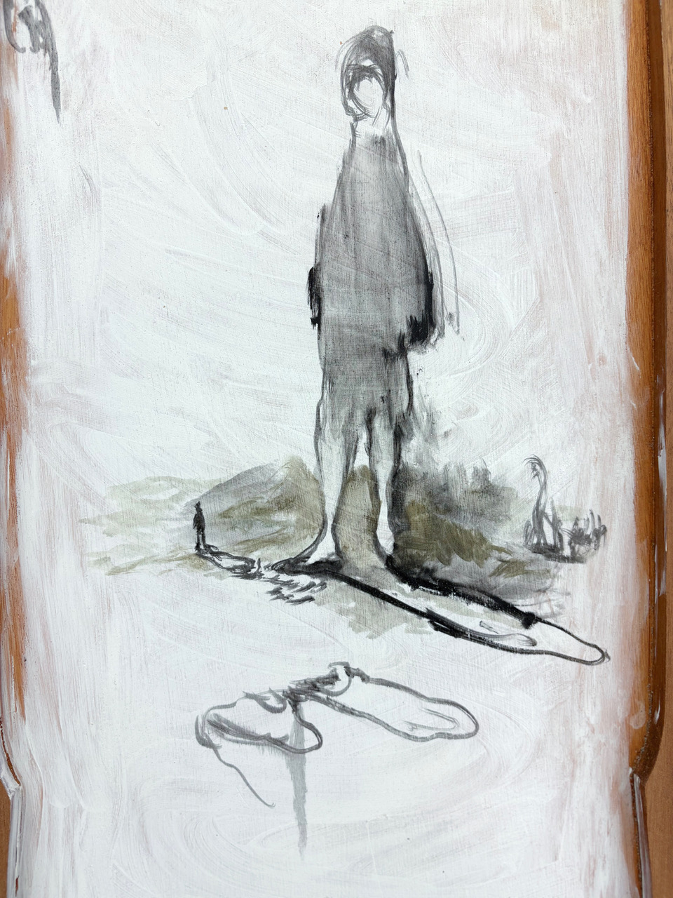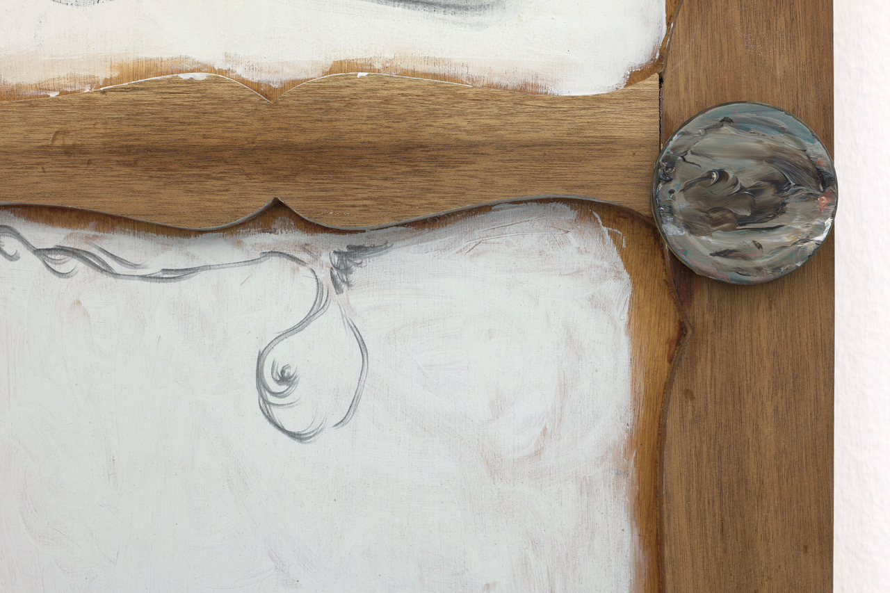 'Flowers Appear', detail: oil and acrylic on wood and metal, 2025
