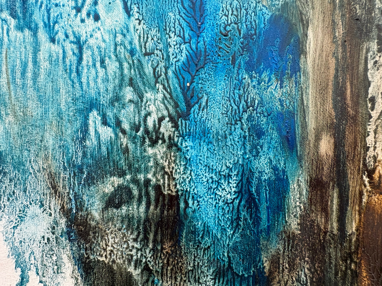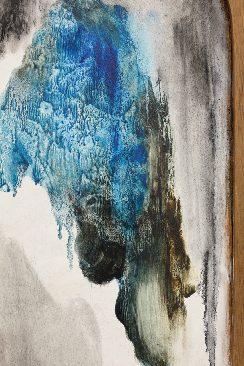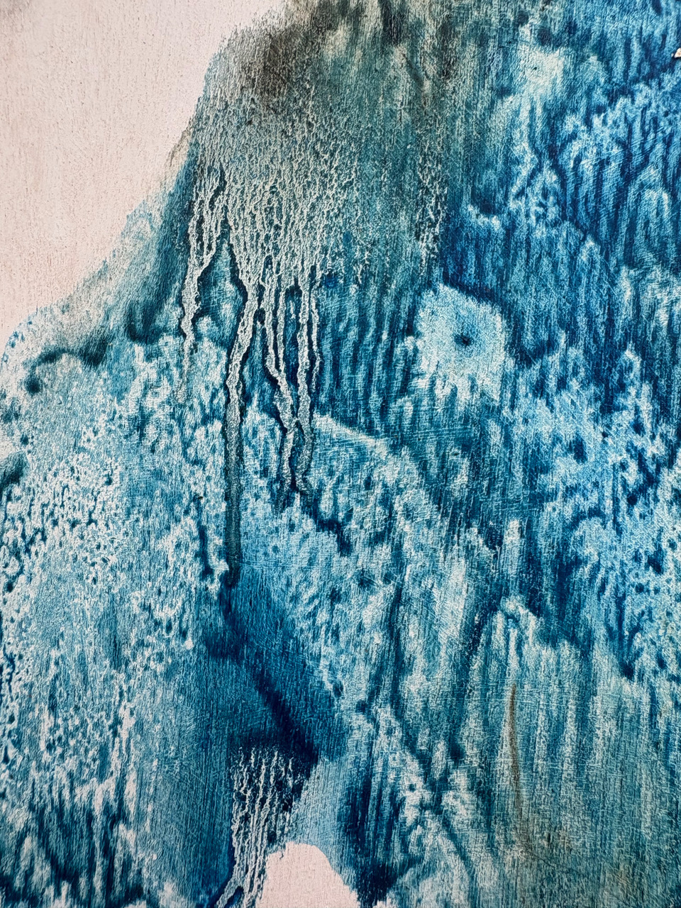 'Flowers Appear', detail: oil and acrylic on wood, 2025