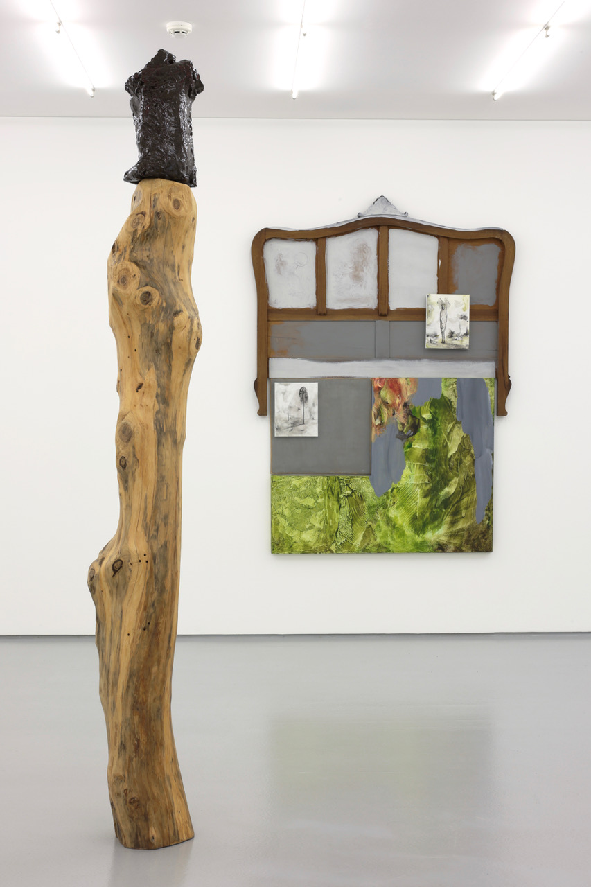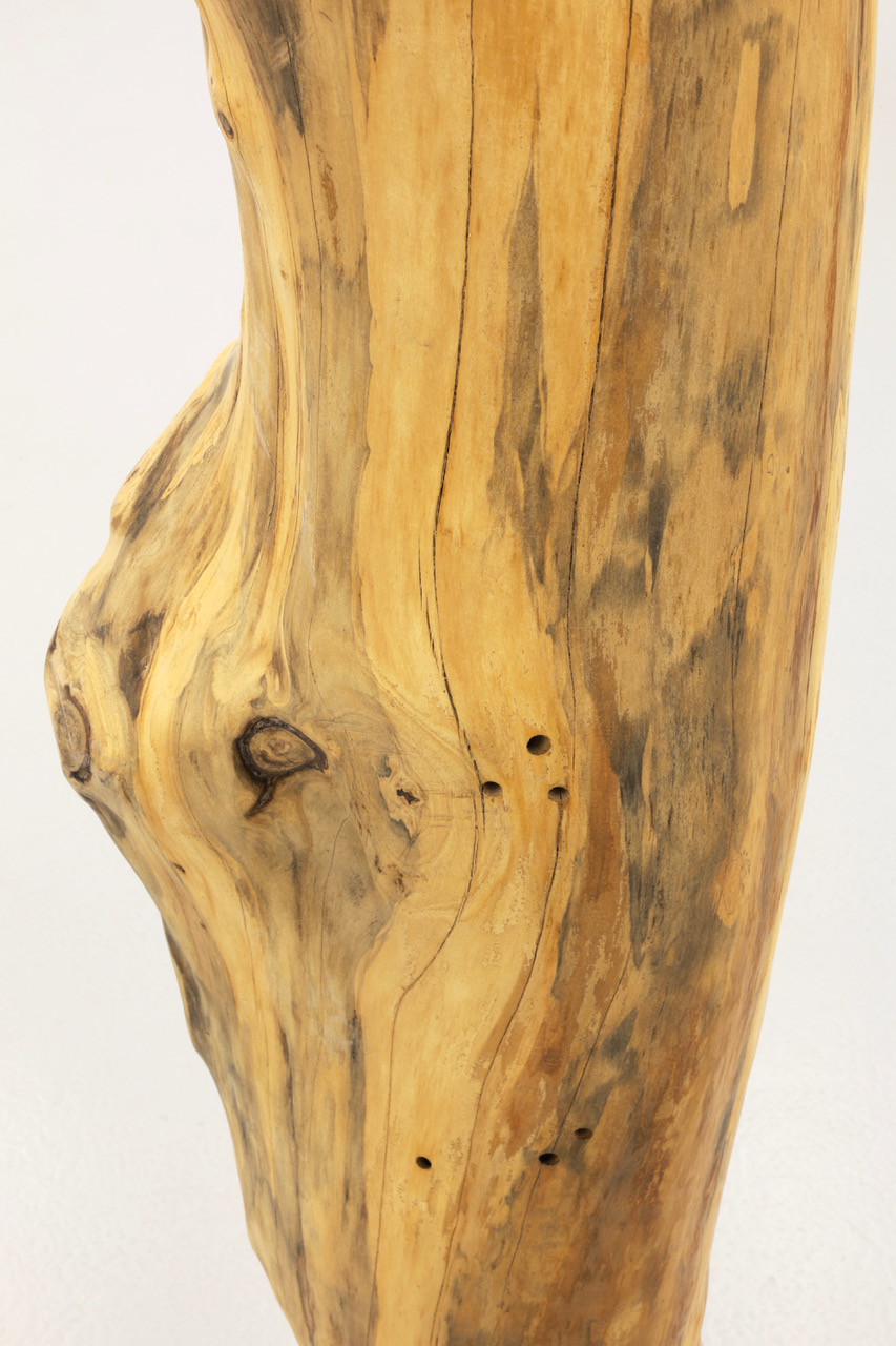 'Shelter', wood, ceramics, 230 x 24 x 25 cm, 2025. Partial exhibition view 'Natural History', Galeria Vera Cortês, Lisbon, 2025/26
