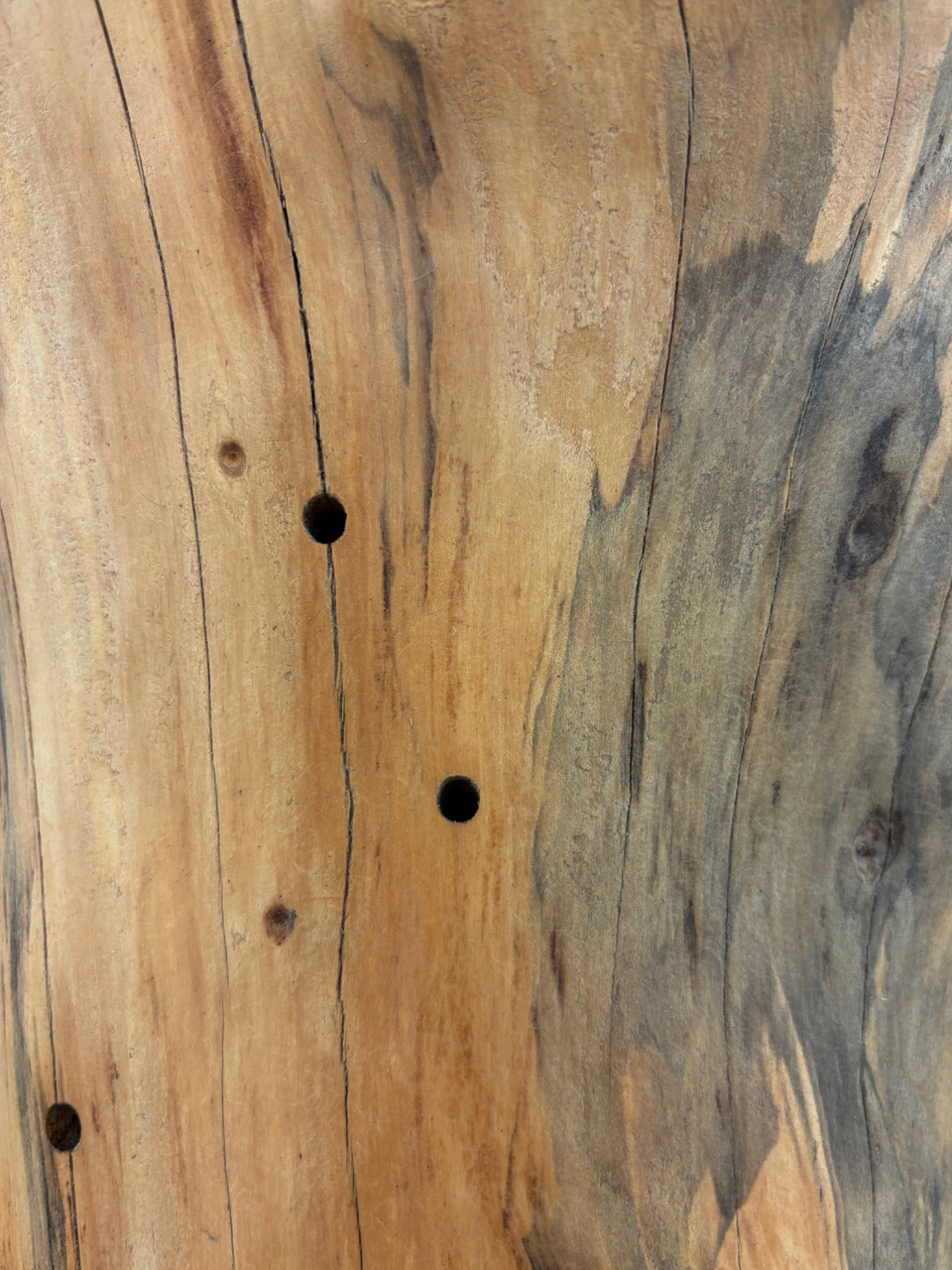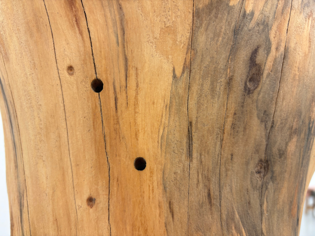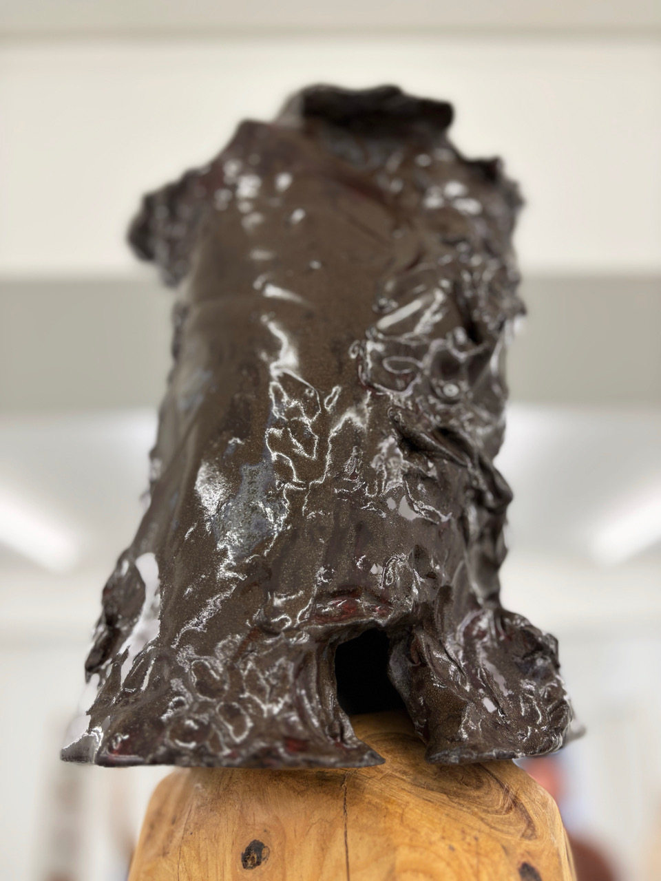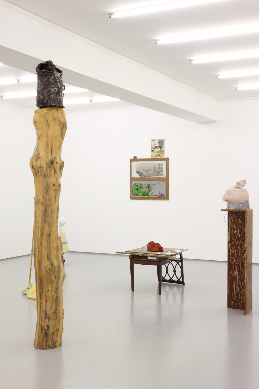'Shelter', wood, ceramics, 230 x 24 x 25 cm, 2025. Partial exhibition view. 'Natural History', Galeria Vera Cortês, Lisbon, 2025/26