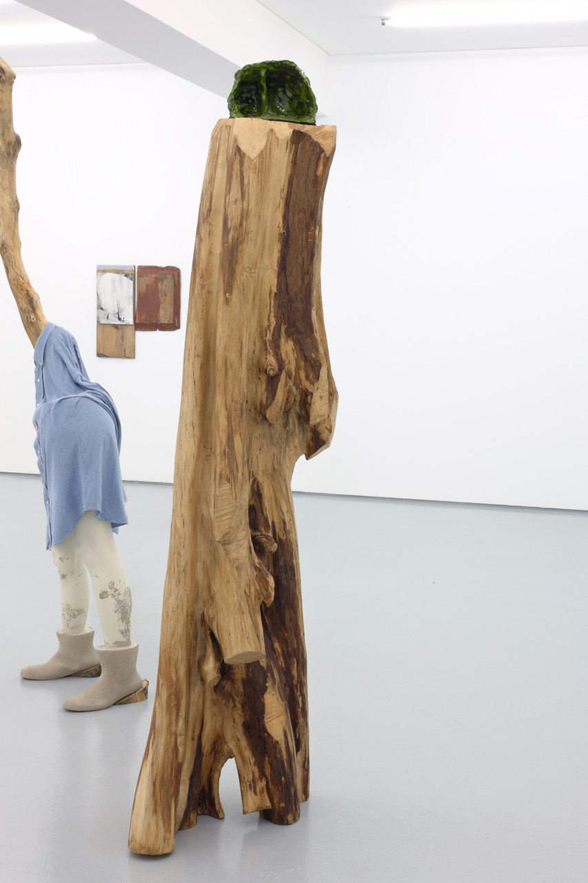 'Fungus', ceramics, cedar wood, 190 x 57 x 30 cm, 2025. Partial exhibition view, 'Natural History', Galeria Vera Cortês, Lisbon (PT), 2025/26 -