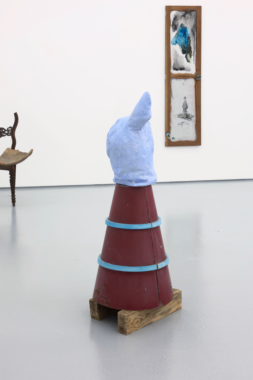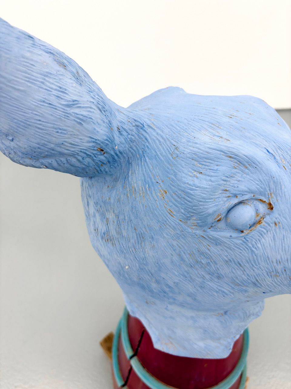 'Kangaroo (Monument)', detail: ceramic plaster with iron oxide, painted iron, 2025. Partial exhibition view 'Natural History', Galeria Vera Cortês, Lisbon (PT), 2025/26