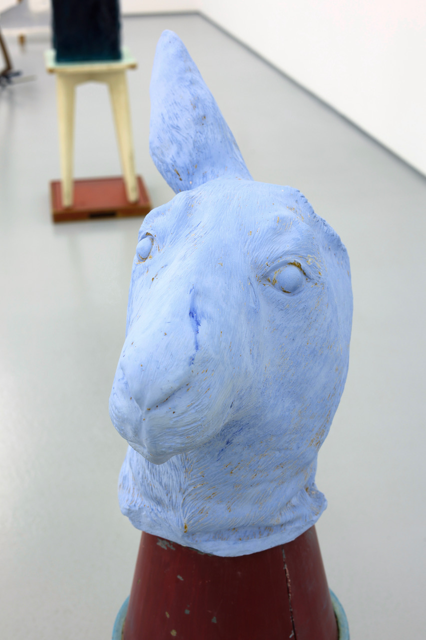 'Kangaroo (Monument)', detail: ceramic plaster with iron oxide, painted iron. Partial exhibition view 'Natural History', Galeria Vera Cortês, Lisbon (PT), 2025/26