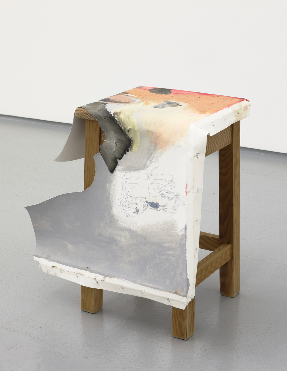 'The Rest', oil, graphite and acrylic on canvas, wooden stool, 45 x 26 x 42 cm, 2025 -