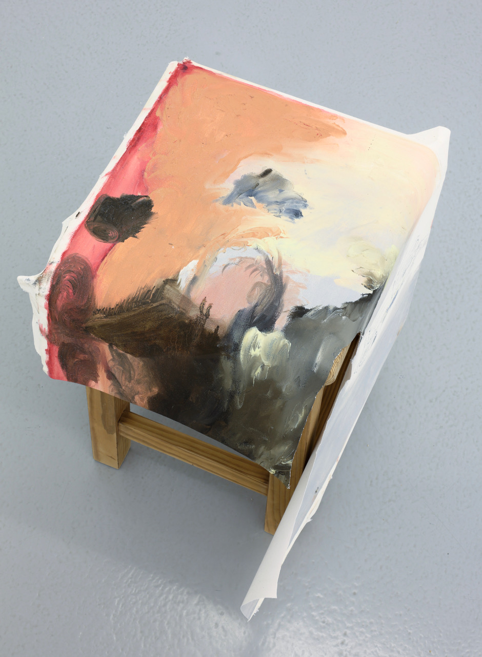 'The Rest', oil and acrylic on canvas, wooden stool, 45 x 26 x 42 cm, 2025 -