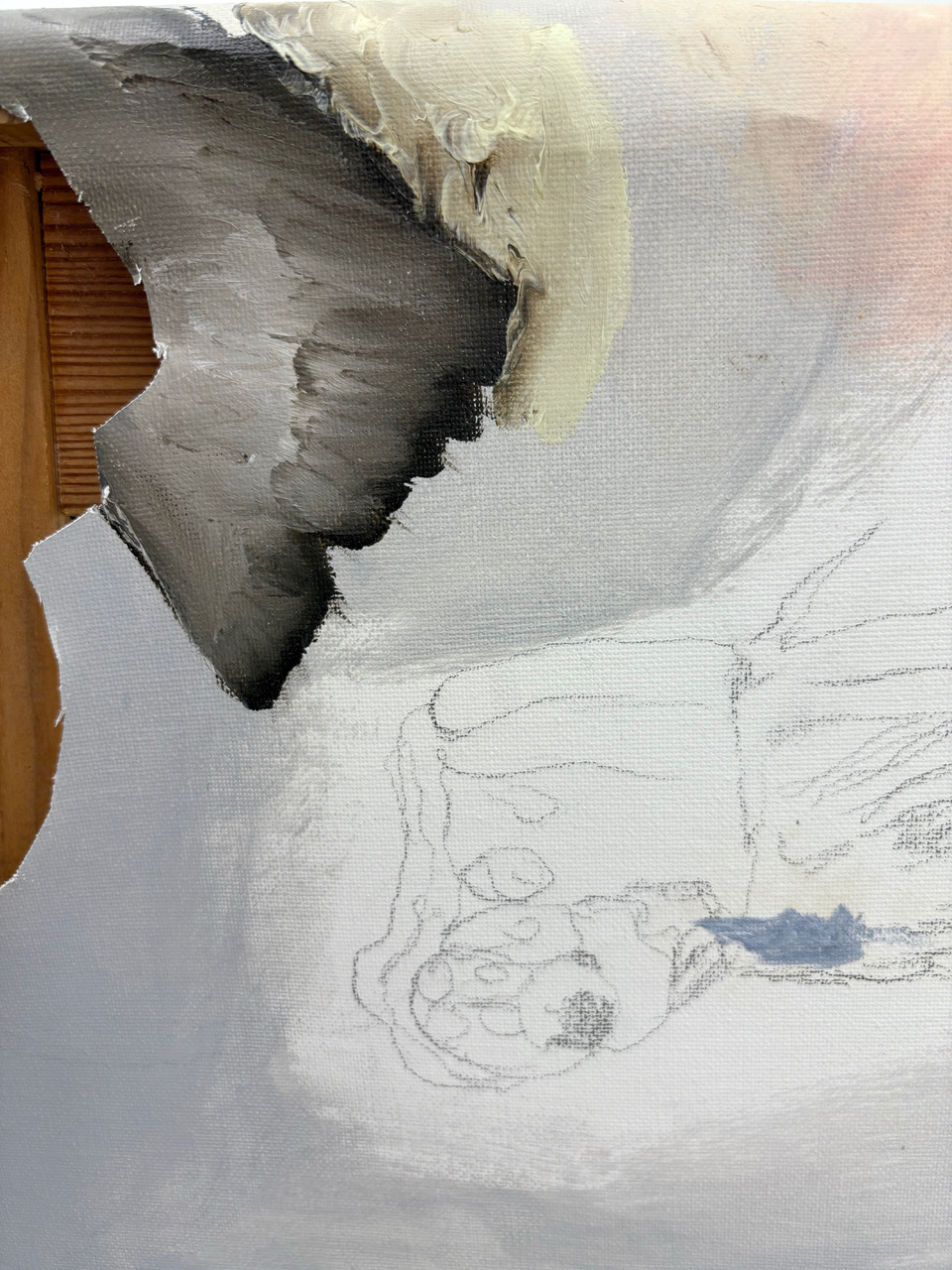 'The Rest', detail: oil, graphite and acrylic on canvas, 2025